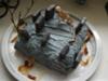 Scoop out a few holes in bottom layer (don't go right through). Make gray icing (icing sugar and water) - not too runny.