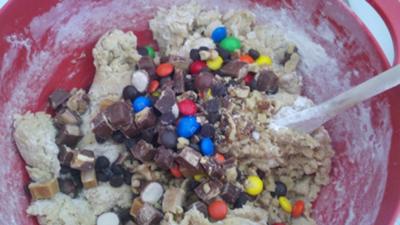 This wonderful cookie was born the day after Halloween! We had a TON of candy, and we had already eaten too much of it. I didn't want to waste the candy, so I baked it into a cookie! My family loved it! Each cookie has a little bit of candy, and every cookie is different!